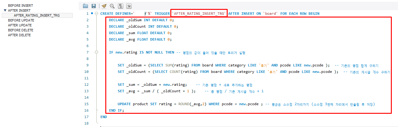 SET _sum = _oldSum + new.rating; -- 기존 평점 + 새로 추가하는 평점