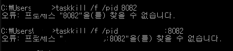 taskkill /f /pid 뒤에 입력 후 엔터를 눌렀다.