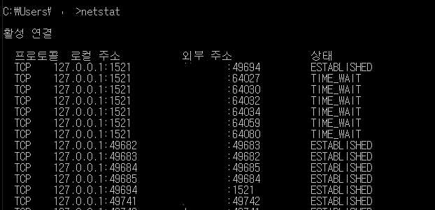참고로 포트번호는 로컬 주소 열 값의 맨 뒤 :(콜론) 뒤의 숫자가 포트번호이다.