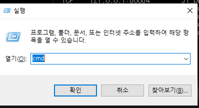 윈도우 + r 키보드 입력후 cmd 입력하기