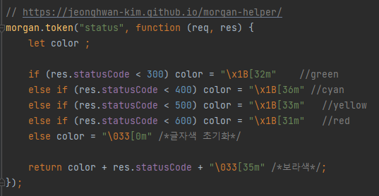 return color + res.statusCode + "\033[35m" /*보라색*/;
