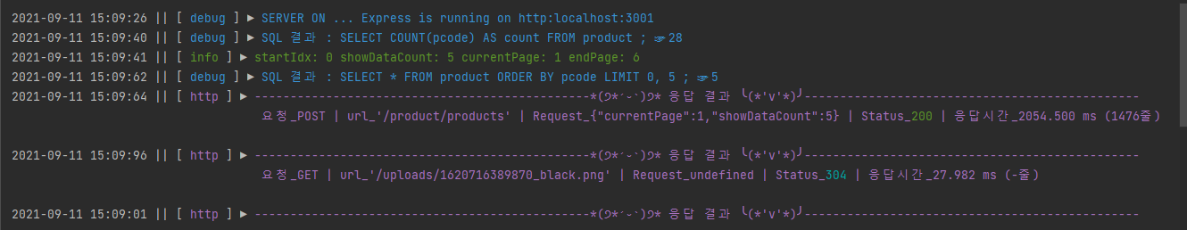 winston 설정이랑 같이 한다고 한 2일 정도 걸렸던 것 같은데, 해놓고 나니까 개발하면서 너무 편하고 눈이 즐거웠다 ㅋㅋㅋ 서버 부하는 많이 걸릴지언정 나는 개인 프로젝트에 사용한거니까 괜찮지 않을까...