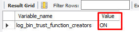 SET GLOBAL log_bin_trust_function_creators = 'ON';