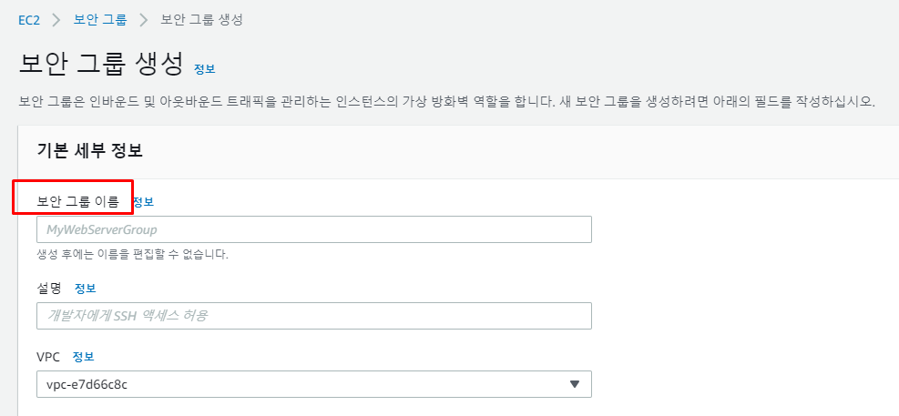 인바운드 규칙: db에 접속하기 위한 조건을 설정하는 곳이다.