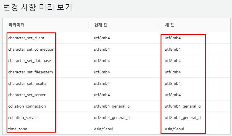 언어는 위 파라미터들을 utf8mb4로 변경해줄 것이다.